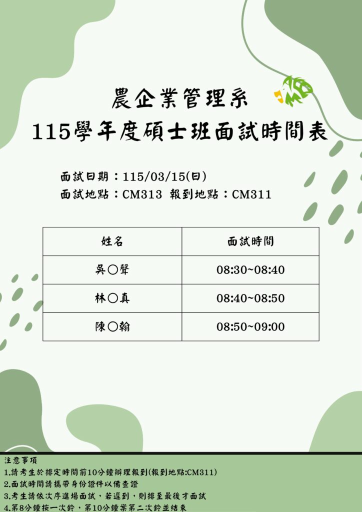 國立屏東科技大學農企業管理系115學年度碩士班暨碩士在職專班面試資訊!